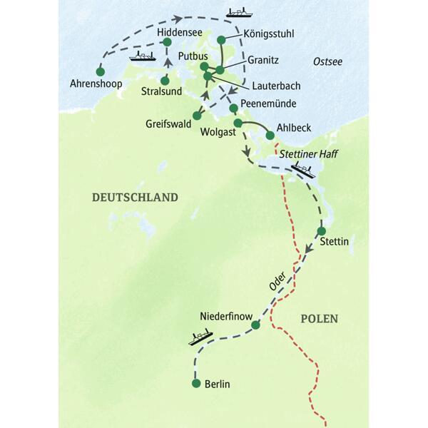 - Gleiten Sie mit der Sans Souci von Stralsund die Küste entlang und durchs Stettiner Haff nach Berlin. Ausflüge führen nach Rügen, Usedom & Greifswald.
