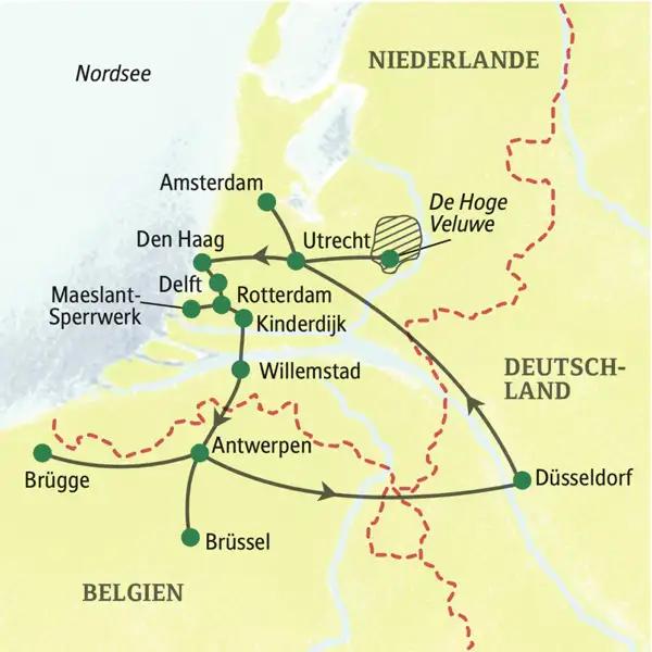 - Stationen dieser Rundreise: Utrecht, Amsterdam, Den Haag, Delft, Rotterdam, Antwerpen, Brügge und zum Abschluss Brüssel