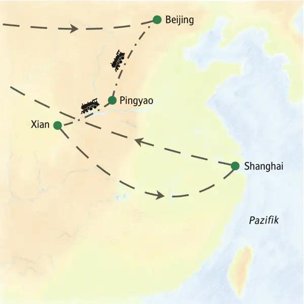 - Bahnfahrten in der 2. Klasse mit Hochgeschwindigkeitszügen von Beijing nach Pingyao und von Pingyao nach Xian