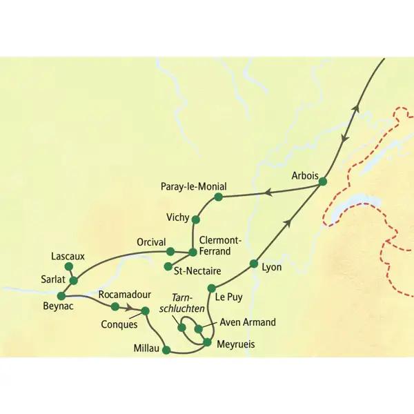 Entdecken Sie das Herz Frankreichs – ein echtes Herzblatt in allen Grüntönen. Auf Ihrer Reise erleben Sie die weiten La... Mehr anzeigen
