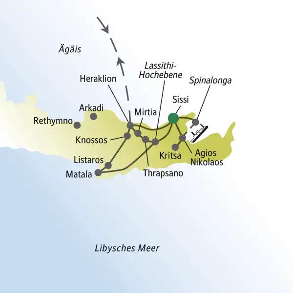 - Die wichtigsten Stationen dieser Singlereise nach Kreta: Heraklion, Knossos, Spinalonga, Lassithi-Hochebene