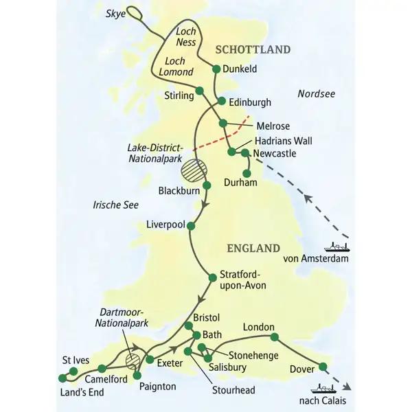 • Die Höhepunkte von England und Schottland in 19 Tagen erleben im Komfortbus ab Düsseldorf