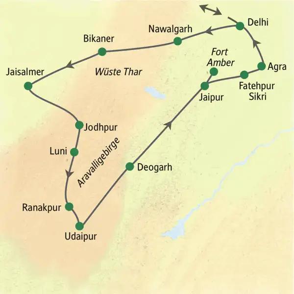 - Die klassische Route mit Bikaner, Jaisalmer und Jodhpur