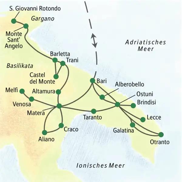 - Klassische Studienreise nach Apulien und in die Basilikata mit Besuch von Matera, Bari, Castel del Monte, Lecce, Otranto, Brindisi und Ostuni