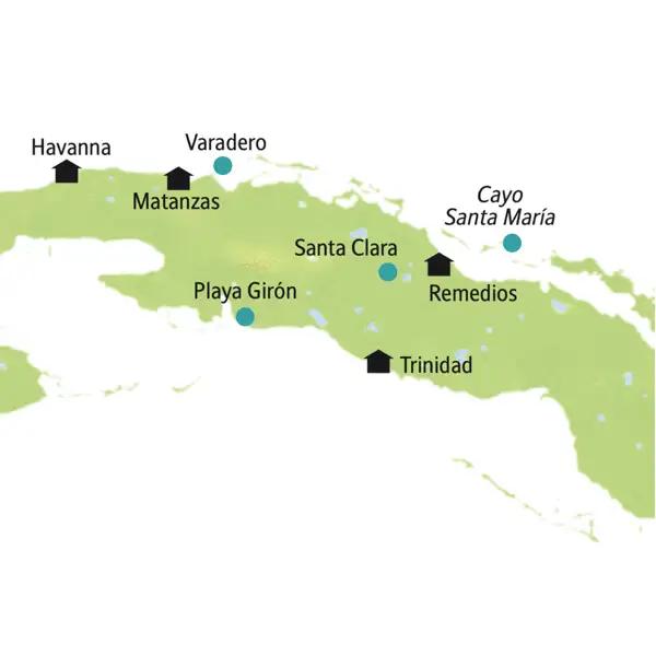 Unsere Reiseroute durch Kuba startet in Havanna und führt über Trinidad, Remedios und Matanzas zurück in die Hauptstadt. Auch Santa Clara erleben Sie auf dieser smart & small-Rundreise. Natürlich bleibt auch Zeit für Strand und Meer.