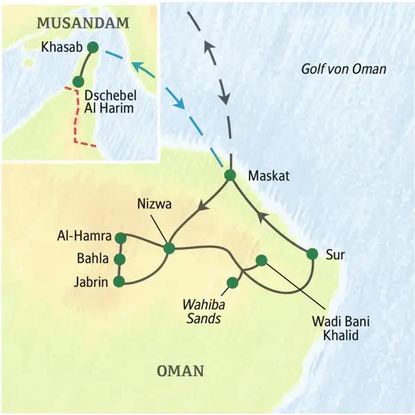 - Kompakte Studienreise zu den Höhepunkten des Omans, mit Aufenthalt auf der Halbinsel Musandam