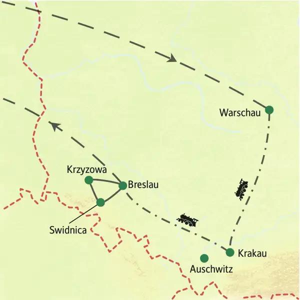 - Bahnreise in der 2. Klasse von Berlin nach Warschau und zurück von Breslau