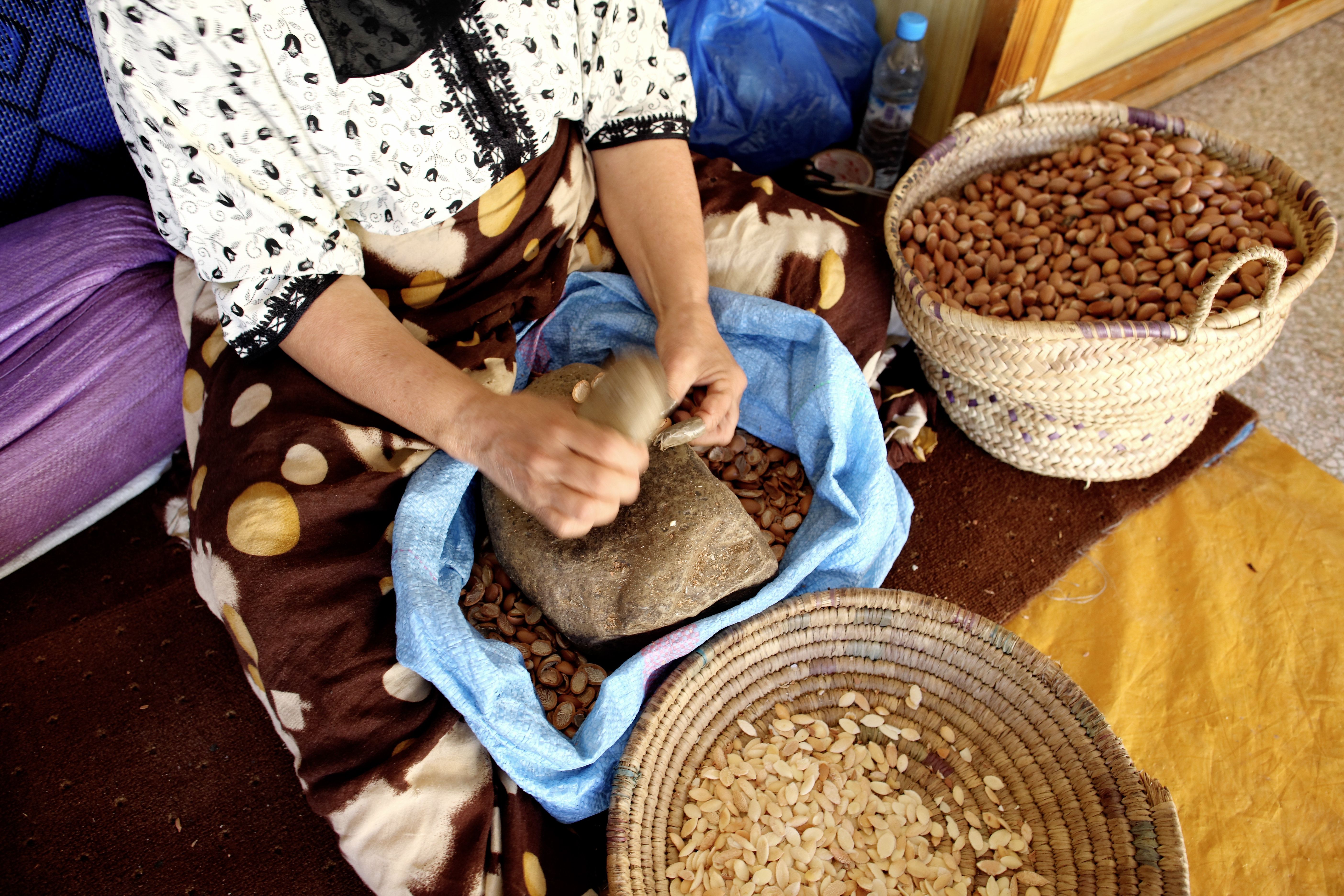In einer Frauenkooperative erleben die Studiosus-Gäste in Marokko, wie Arganöl gepresst wird. Quelle: Getty Images