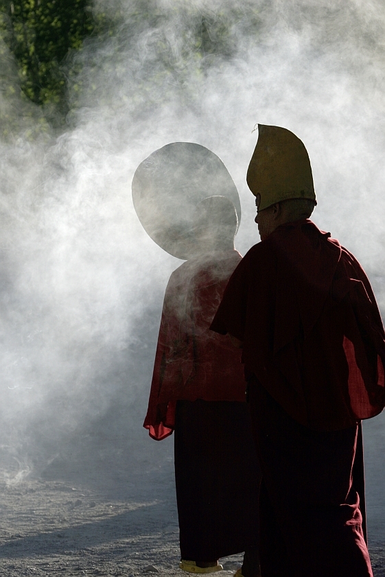 Buddhistischer Mönch im Kloster Tikse bei der morgendlichen Puja, einer Form religiöser Andacht. Quelle: Studiosus.