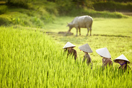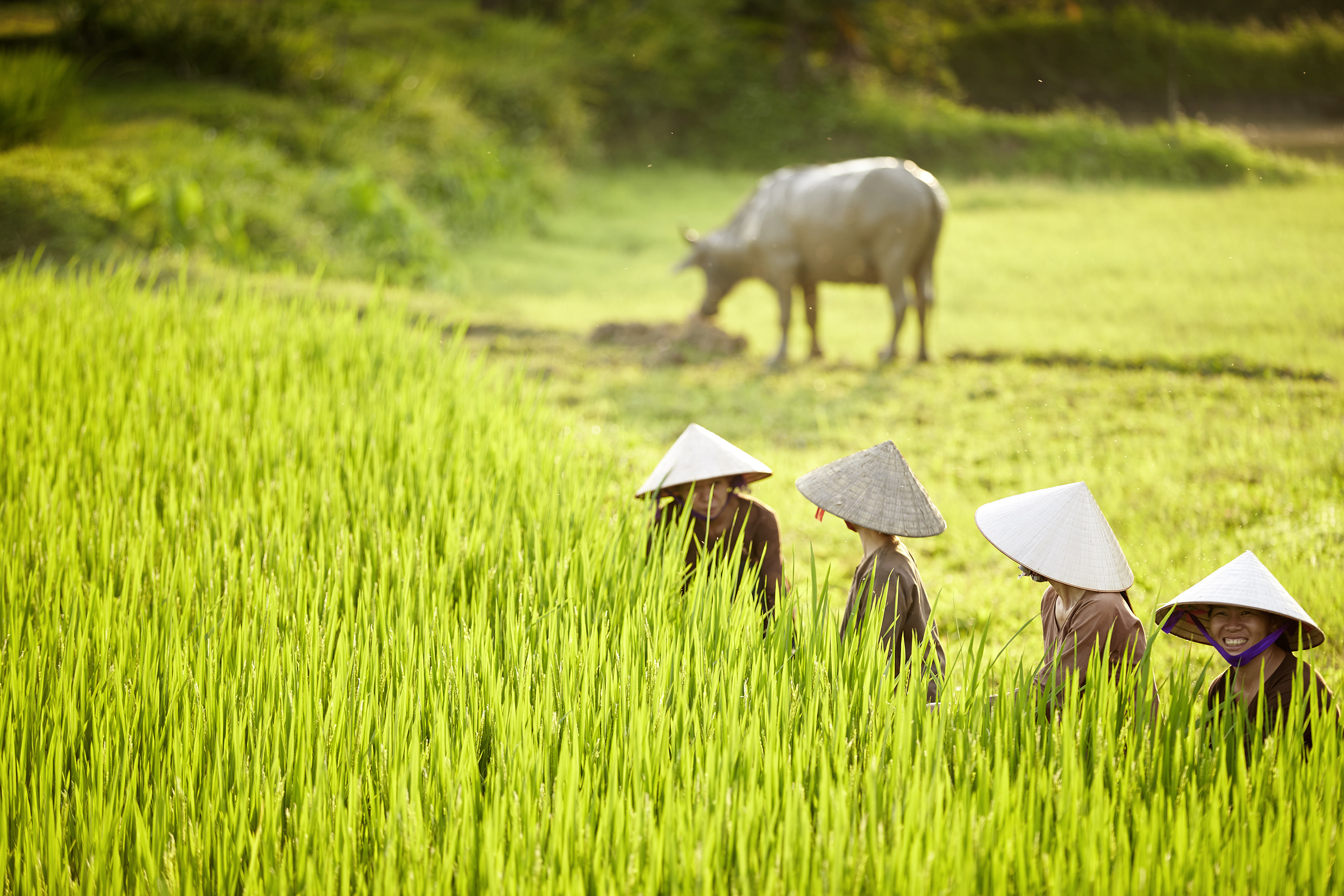Endlose Reisfelder gleiten bei der neuen Studiosus-Reise "Vietnam - Kambodscha - Thailand - Impressionen Südostasiens" an den Gästen vorbei. Quelle: Studiosus