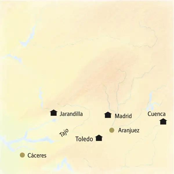 - 8 Übernachtungen im Doppelzimmer, Hotels mit Klimaanlage, in Cuenca und Jarandilla de la Vera auch mit Swimmingpool (saisonal)