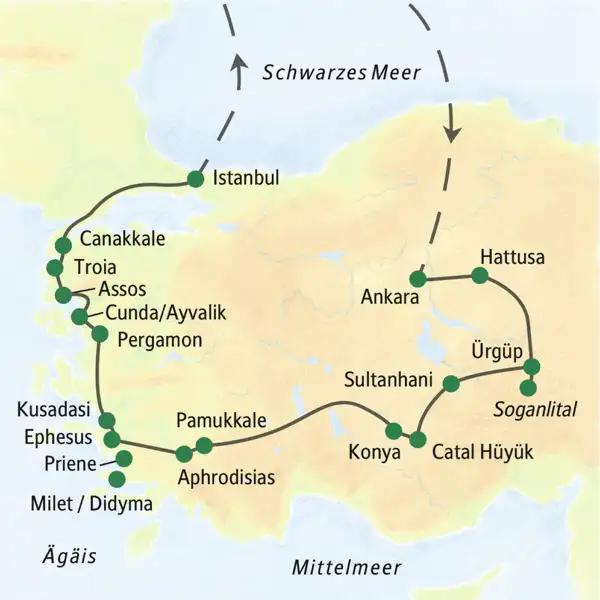 - Die Höhepunkte dieser Studiosus-Reise in die Türkei: Ankara, Hattusa, Kappadokien, Konya, Pamukkale, Ephesus, Pergamon, Troia und Istanbul
