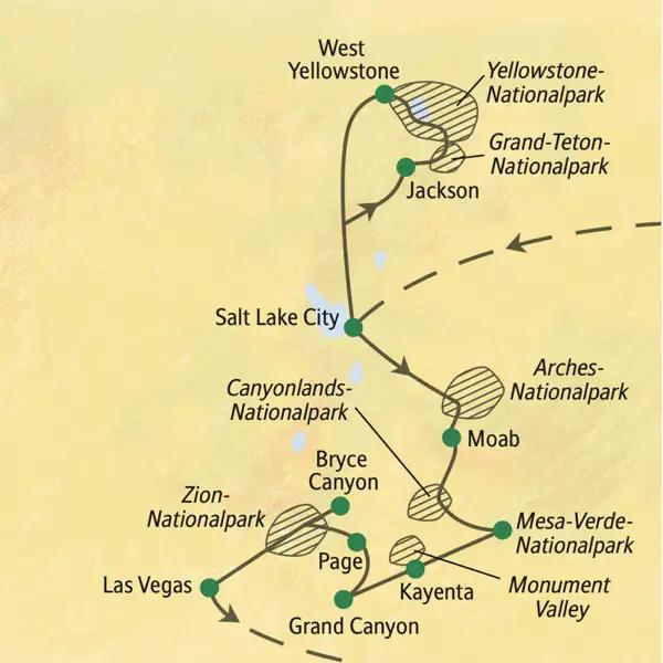 - Mit Aufenthalten in Salt Lake City und Las Vegas