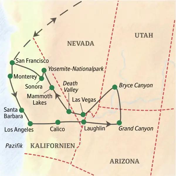 - Weitere Stationen dieser Rundreise durch den Westen der USA: Monterey, Santa Barbara, Calico, Laughlin, Bryce Canyon, Death Valley