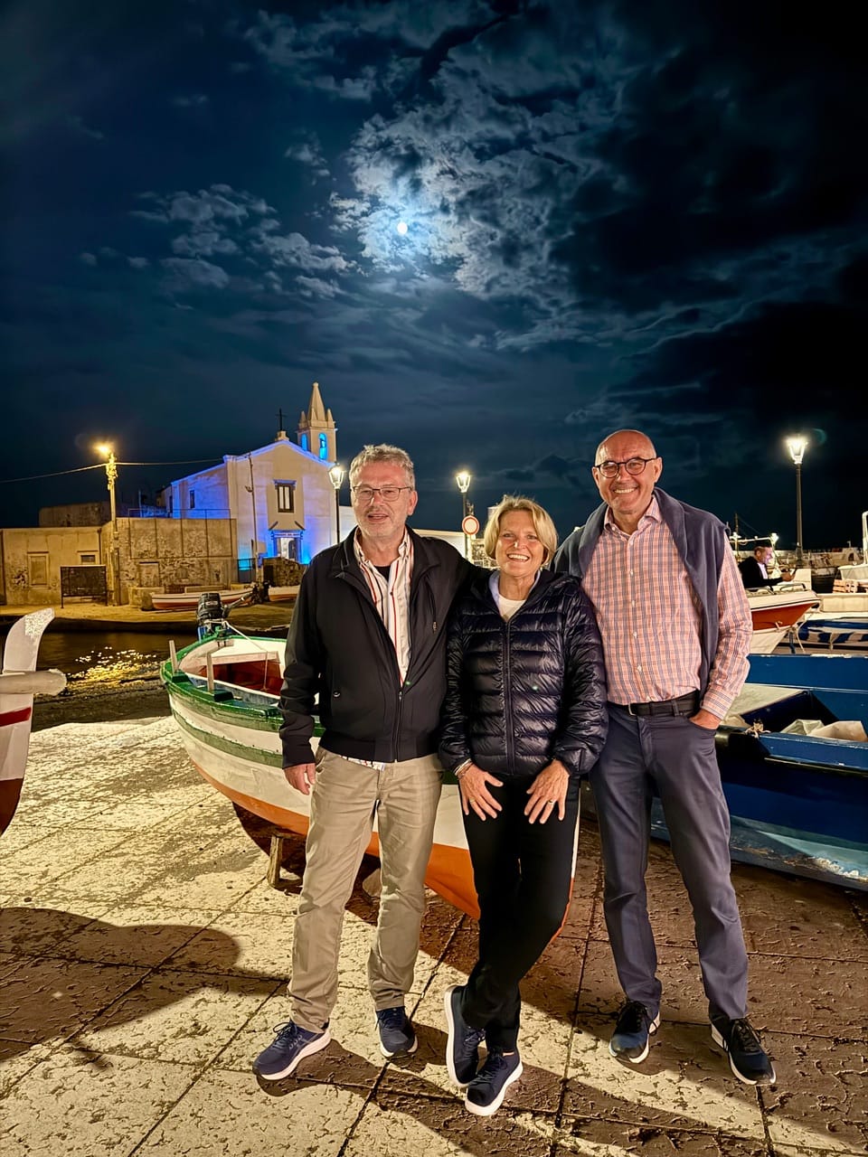 Karl Bohuslavizki: Aber wir drei haben uns fest vorgenommen, jedes Jahr mindestens eine gemeinsame Studiosus-Reise zu unternehmen. Immer ein Highlight! Übrigens hat Katharina dafür extra einen Countdown auf ihrem Handy eingerichtet und schickt uns davon regelmäßig einen Screenshot: Noch 98 Tage bis zur nächsten gemeinsamen Reise, noch 95 Tage ... Für nächstes Jahr ist eine me & more-Reise nach Apulien angedacht. Und dazwischen halten wir uns per WhatsApp-Gruppe auf dem Laufenden. Wissen Sie, wie die heißt? Die Supermonde!
