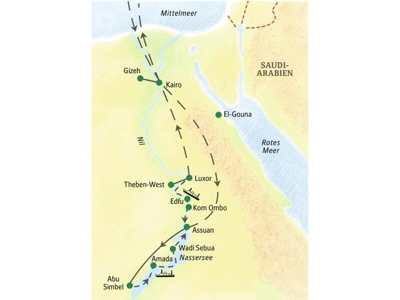 Die Schiffe für unsere Kreuzfahrten auf dem Nil und dem Nassersee sind sorgfältig ausgewählt und persönlich geprüft. Besonders haben wir auf die Einhaltung internationaler Sicherheits- und Hygienestandards geachtet. Doch bedenken Sie bitte, dass sich der Standard in Ägypten noch immer von dem Westeuropas unterscheidet. Bisweilen wird das Motorengeräusch der Schiffe (bzw. der stromerzeugenden Generatoren) nachts als störend empfunden. Teilnehmer mit sehr leichtem Schlaf sollten Ohropax o. ä. mitnehmen.