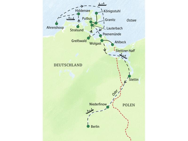 - Gleiten Sie mit der Sans Souci von Stralsund die Küste entlang und durchs Stettiner Haff nach Berlin. Ausflüge führen nach Rügen, Usedom & Greifswald.