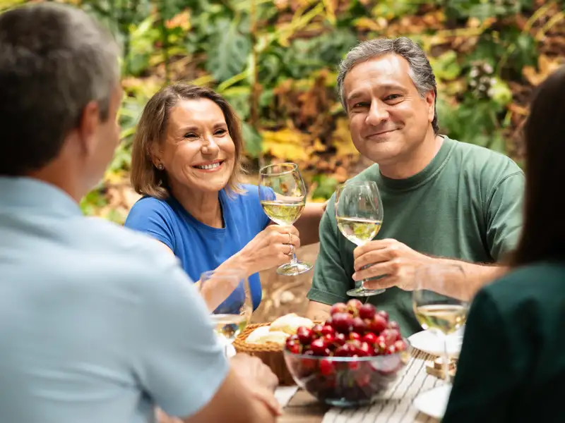 - Frühstück, ein Mittagessen auf einem Weingut, ein Mittagessen und 3 Abendessen in typischen Restaurants
