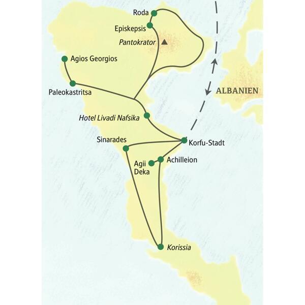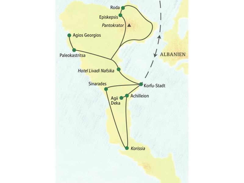 - Wichtigste Stationen dieser Wanderreise nach Korfu: Korfu-Stadt, Paleokastritsa und die Bergwelt im Norden der Insel