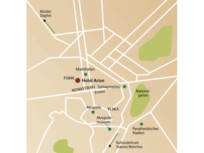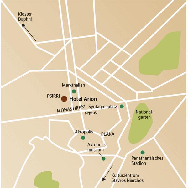 - Zentral gelegenes Hotel: das Hotel Arion in Gehweite zur Fußgängerzone, zur Altstadt Plaka und zum Monastirakiplatz