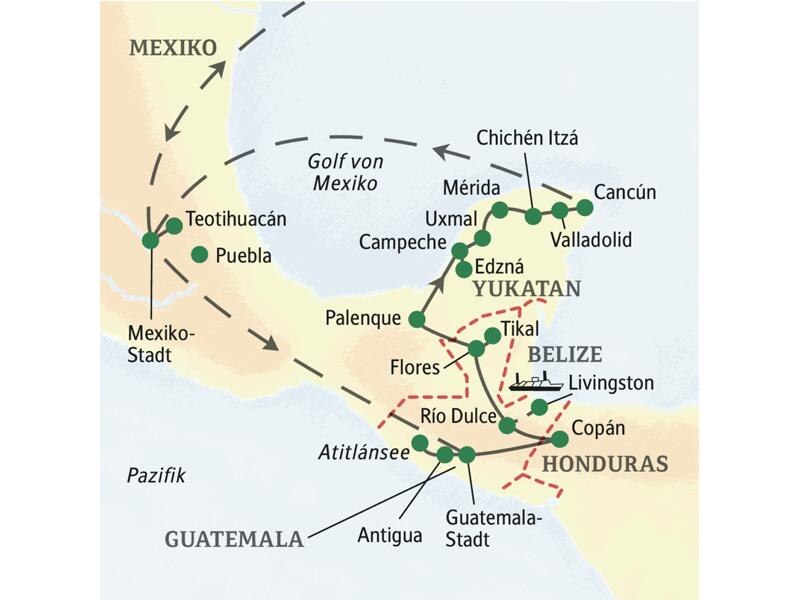 - Von der Hauptstadt Mexikos in den guatemaltekischen Dschungel und auf die Halbinsel Yukatan