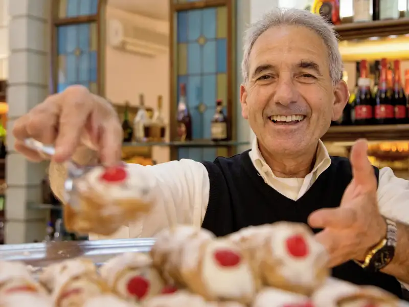 Vorbei am Teatro Massimo, der Oper Palermos, und dem Teatro Politeama kommen wir zu den Cantieri Culturali della Zisa, wo uns zeitgenössische Kunst erwartet. Gleich nebenan befindet sich der Sommerpalast der Normannenherrscher: Hier kultivierten sie den arabischen Stil für ein weltliches Paradies. Die prächtige Villa Malfitano Whitaker schauen wir uns anschließend an. Nachmittags machen wir uns auf zum traditionellen Teatro dei Pupi: Gar nicht kindisch, sondern UNESCO-gelistet ist dieses berühmte Marionettentheater, wo uns Vincenzo Argento, "Pupi"-Macher mit familiärer Unterstützung, hinter die Kulissen schauen lässt.