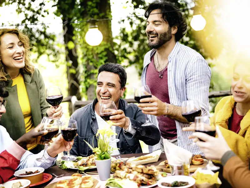 - Frühstück, ein Mittagessen auf einem Weingut, ein Abendessen in einem landestypischen Restaurant, 7 Abendessen im Hotel