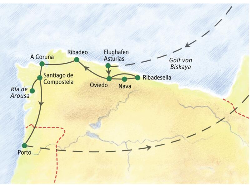 - Abwechslungsreiche Mischung aus landschaftlichen und kulturellen Höhepunkten im grünen Norden Spaniens